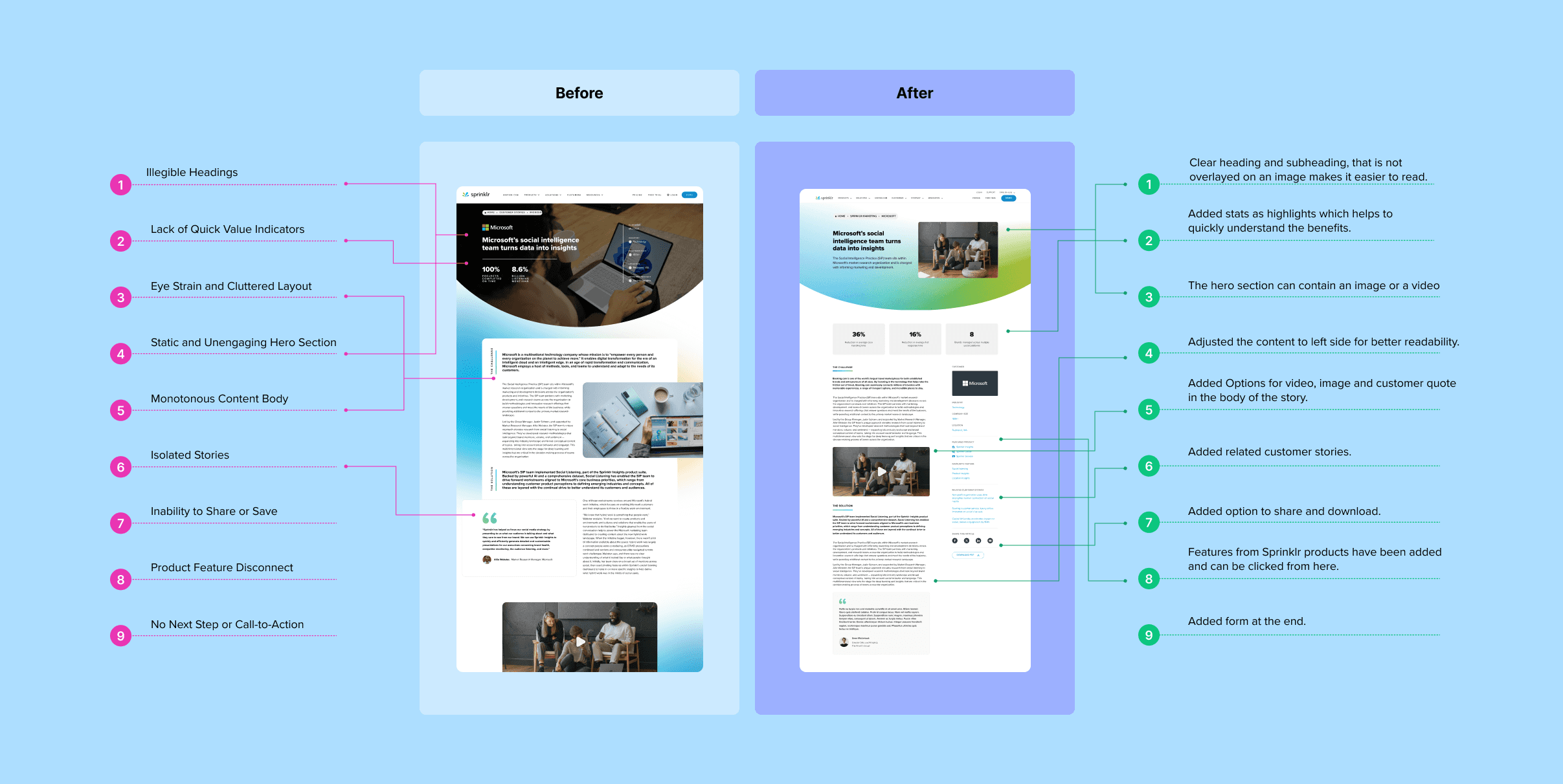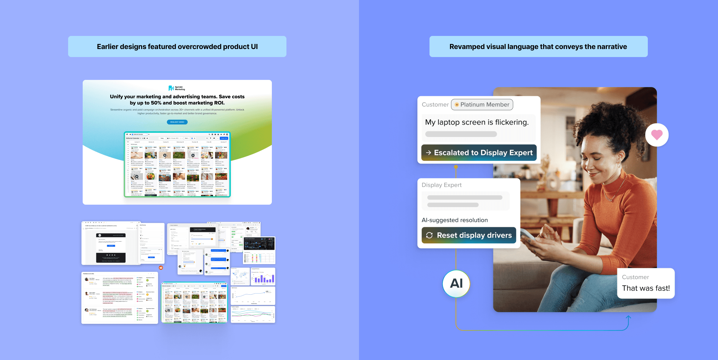 The previous product UI screens were cramped, hard to read, and lacked a cohesive narrative. I implemented visuals that tell a story—images that express the product's purpose and flow without needing to read everything on the page. Now, each visual conveys a clear message, enhancing the overall product experience.